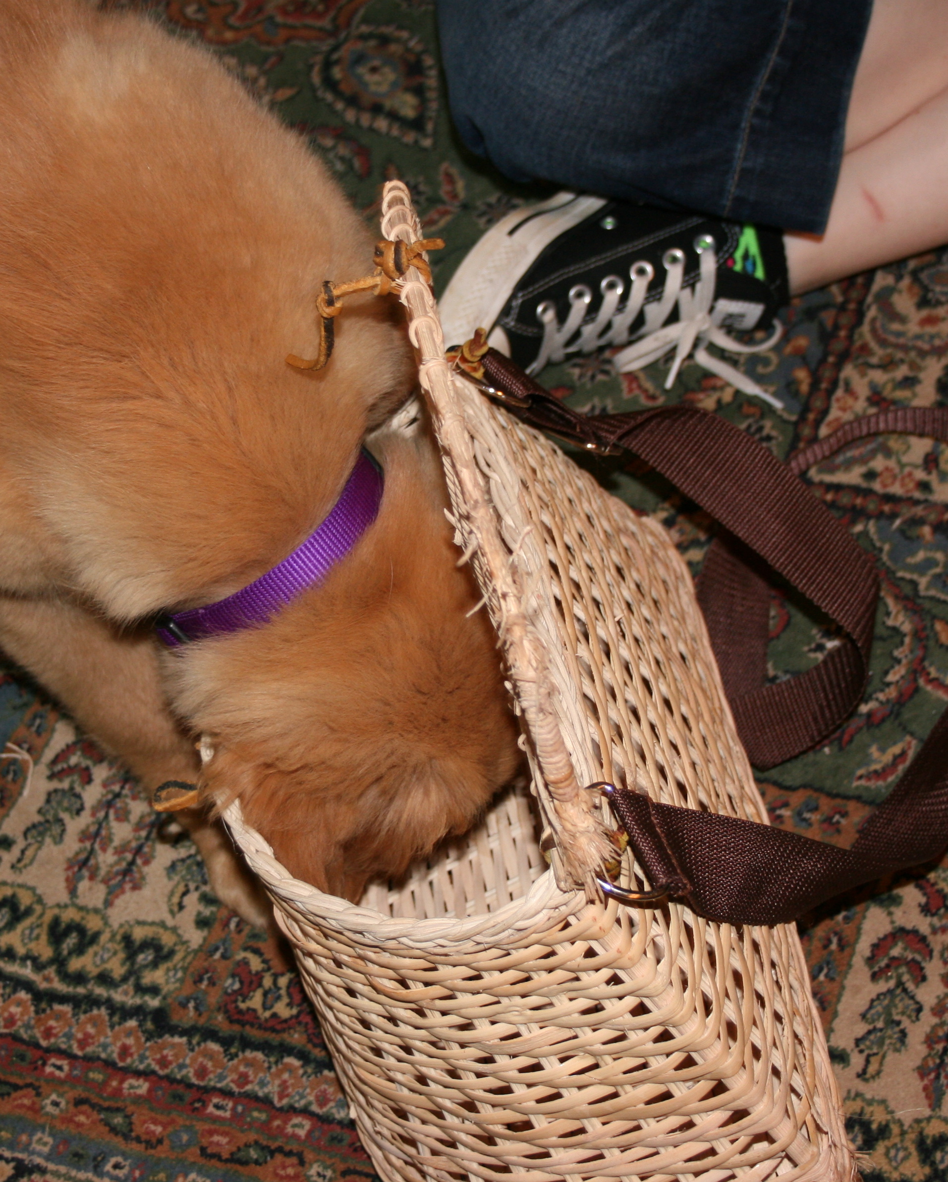 The new pup seems as stubborn and hardheaded as the original, eating everything she gets close to. What she can’t swallow she chews into pulp. At the moment she’s working on a wicker fish creel but when she’s outside her foodstuff of choice seems to be clods from my neighbor’s freshly plowed field.