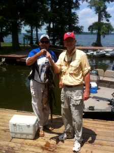 I spent a few hours Monday on the lake in the very capable hands of guide Billy Blakley out of Blue Bank Resort www.bluebankresort.com, where owner Mike Hayes and his crew will be glad to see you. Billy and I (with help from Seth Lamphier, one of Blue Bank’s workers) startedĀ the day by putting out some yo-yos. These are basically spring-loaded limblines – something akin to high tech trotlines.