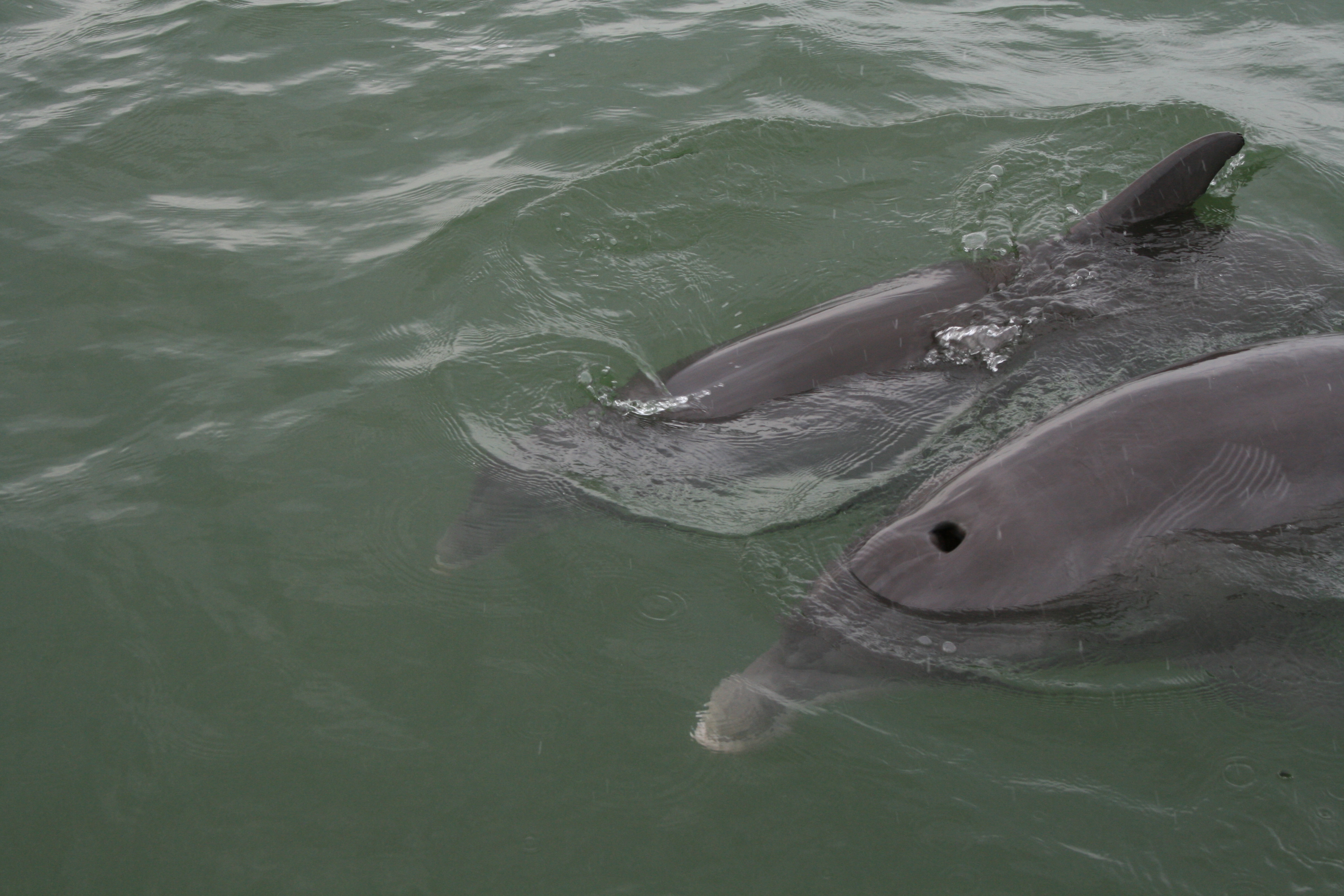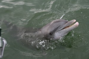 No tarpon, perhaps, but the day was not without its high points. Dolphin surfaced all round us for most of the morning. One pod cruised close for an apparent visit and pair broke off and spent several minute playing within three feet of the boat.