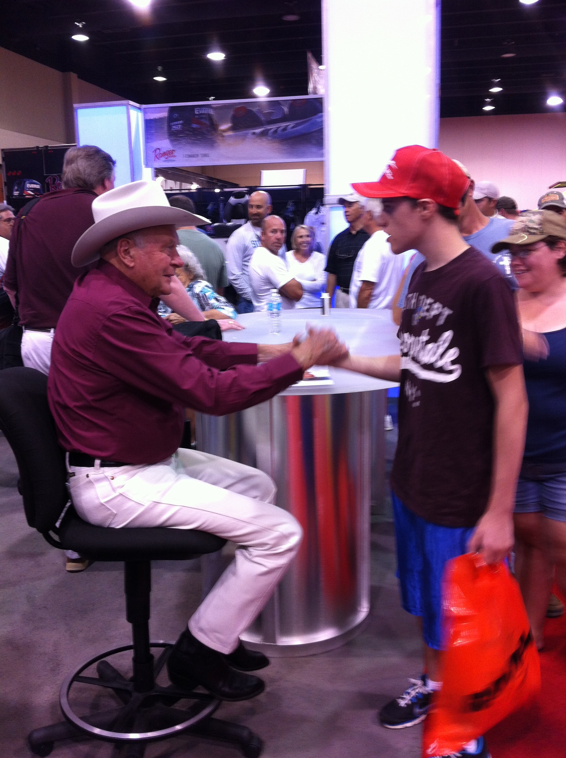 F.L.W. August 11, 2012August 11, 2012 ~ Gary Garth At FLW Expo in Duluth, Ga., awaiting the Day 3 weigh-in of Forrest Wood Cup championship. Forrest L. Wood, after whom the event is named meeting fans. Gracious as always. It’d be like going to a basketball game and meeting James Naismith. Share: Click to email a link to a friend (Opens in new window) Email Click to share on LinkedIn (Opens in new window) LinkedIn Click to share on Facebook (Opens in new window) Facebook Click to share on Threads (Opens in new window) Threads Click to share on Bluesky (Opens in new window) Bluesky Like Loading... Published by Gary Garth Writer Contributing outdoor columnist, USA Today Field Notes columnist, Kentucky Monthly View all posts by Gary Garth