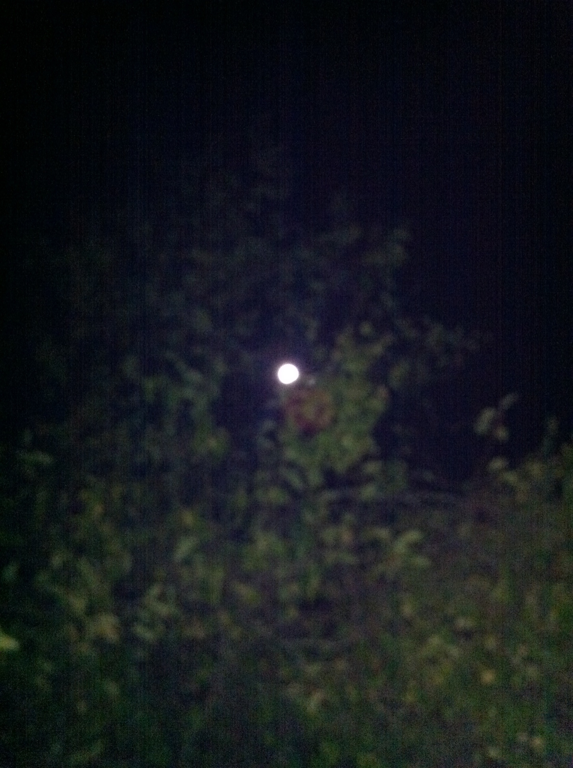 Tonight’s Hunter’s Moon, through the crown of the backyard apple tree.