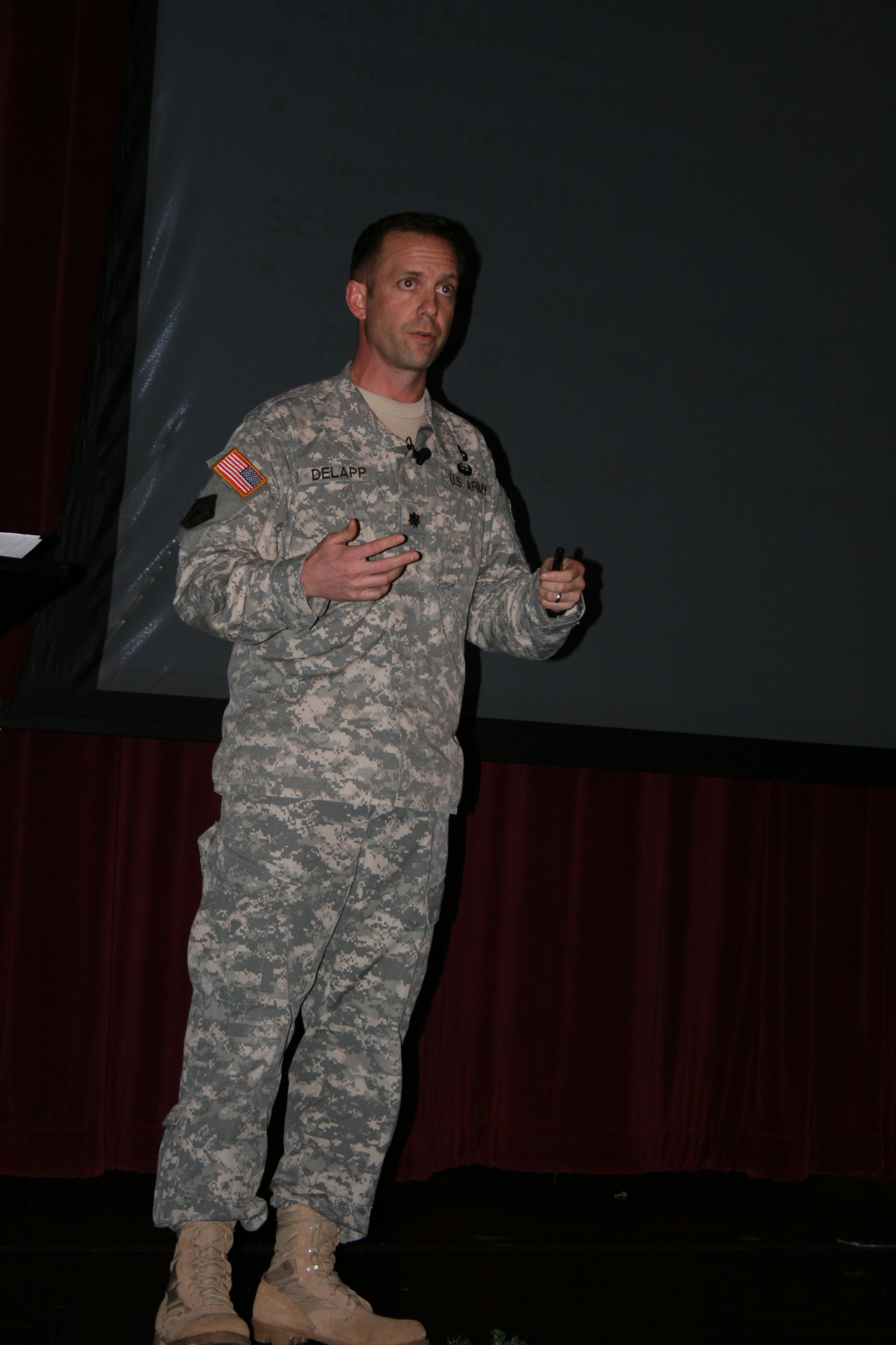 Nashville District commander Lt. Col. James DeLapp (pictured), architect of the plan that, if implemented, would result in physical barriers blocking boat access to the fishing rich water below Barkley, Center Hill, Cheatham, Cordell Hull, Dale Hollow, J. Percy Priest, Laurel River, Martins Fork, Old Hickory and Wolf Creek dams, was met by a crowd of about 300.