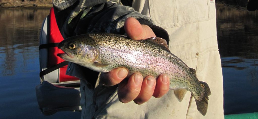 The hatchery-reared trout are about 11 inches and, typically, not picky when slashing a bait.