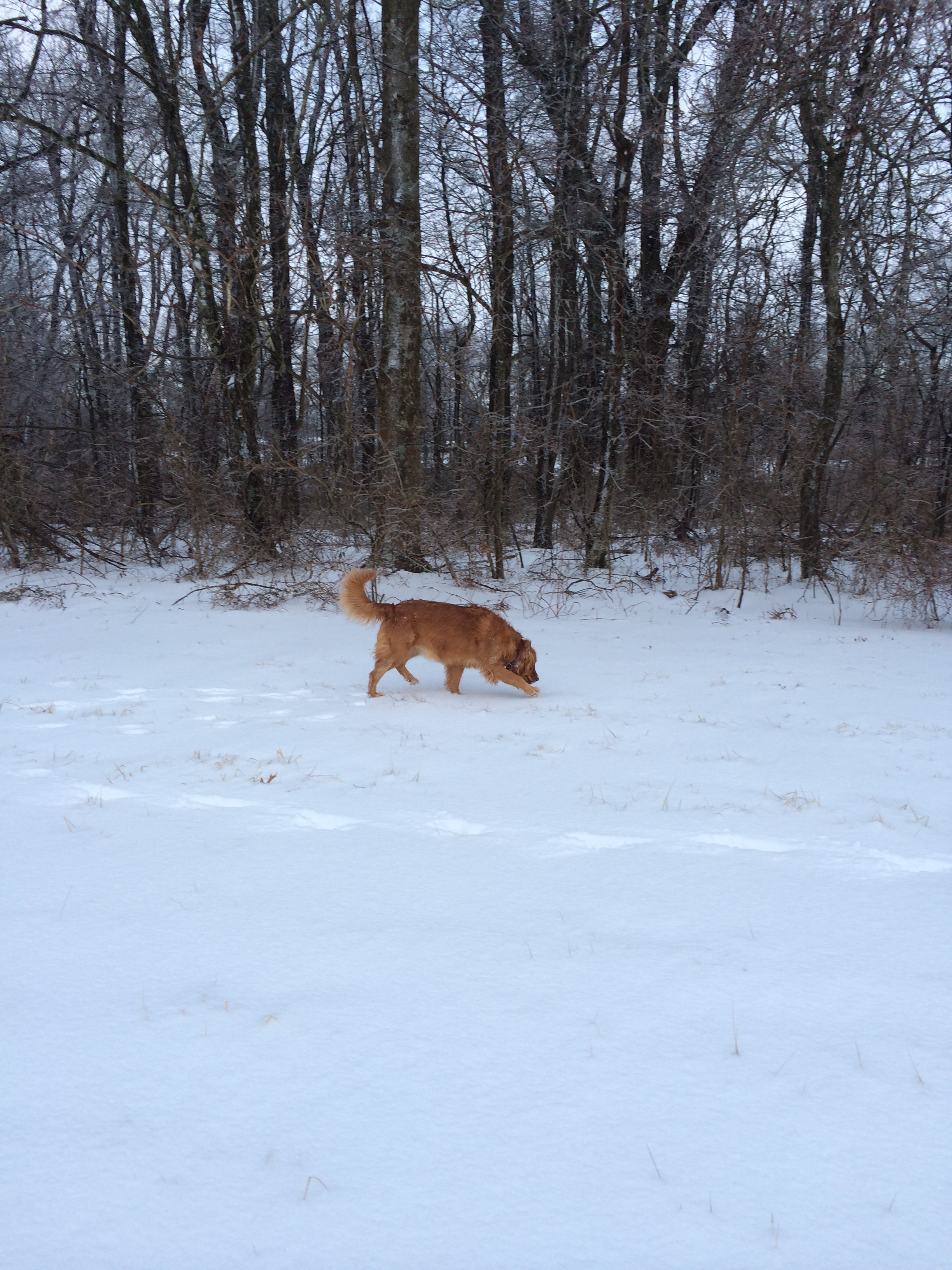 Until then, at least the retriever likes playing in the snow.